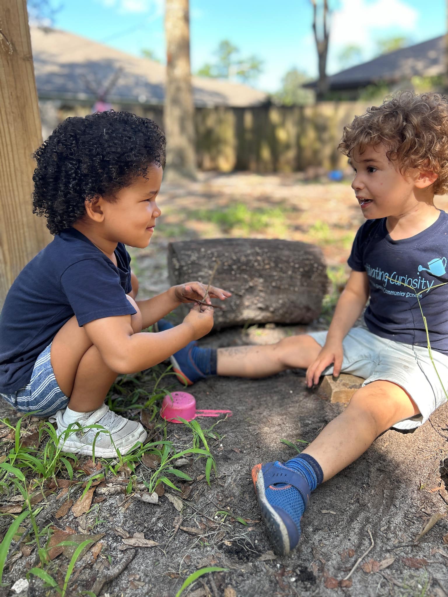 They imagine the tree is a hospital or space ship; they work together to make birthday cupcakes for Santa who is always almost about to arrive; they grab magnifying glasses and books and search for bugs; or just sit in a circle and discuss whatever it is on their minds. Three and four year olds! Pure magic!